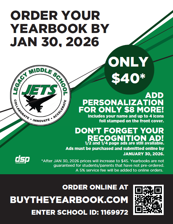 Lastly, I believe that parental and community involvement is vital to our core business of teaching and learning. Our mission is to ensure that every student has a promising and successful future, and our vision is that with the support of our families and the community, we will create enriching and diverse pathways to lead our students to success. Please get involved and support our Legacy Jets! Student success is driven by the support of parents, teachers, staff, and community members.